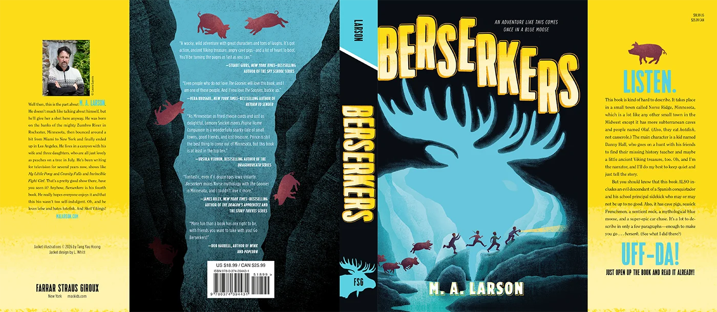 Cover illustration for Berserkers, written by M. A. Larson, a story of modern-day hunt for Viking treasure collides with Spanish conquistadors and small-town Minnesota.